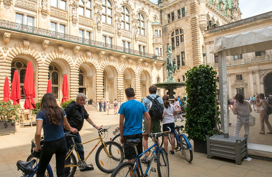 Tourvorschlag: Ab Rotherbaum, St. Pauli Hafenrand, Michaeliskirche, Portugiesenviertel, Deichstraße, Speicherstadt, Kontorhäuser der Altstadt, Fleetinsel, Neustadt, Brahmsplatz, Gerichtsviertel, Gänsemarkt, Binnenalster zum Domplatz. Auf den Spuren des klassischen Stadtbildes bis zur Moderne der Hafen-City, vom Rathaus über Shopping-Meilen radeln wir unterhaltsam, spannend, und informativ durch das Herz der Stadt. Diese wirklich ausgewogene Fahrradtour mit ihren Stopps an den attraktivsten Punkten der Stadt ist für jedes Alter bestens geeignet.